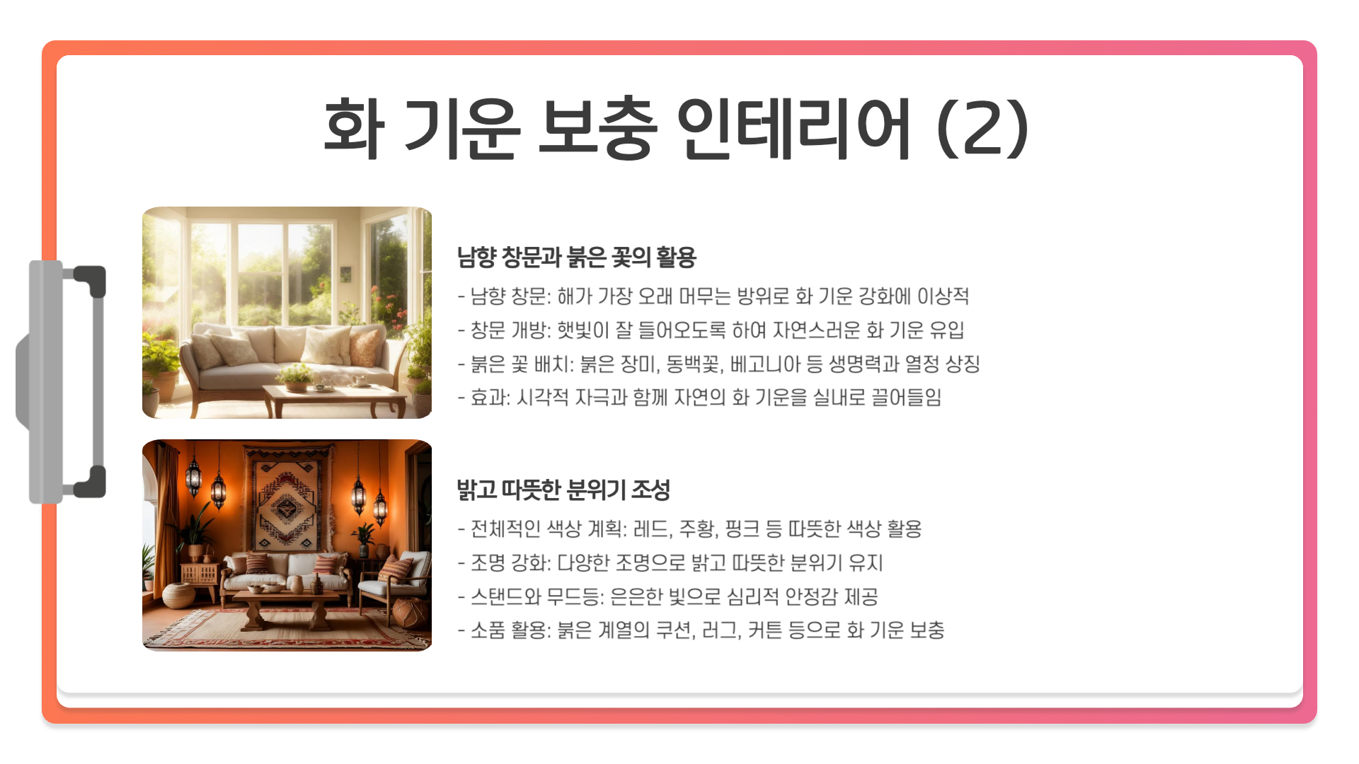 - 화(火) 기운이 부족할 때, 공간으로 채우는 방법 목차