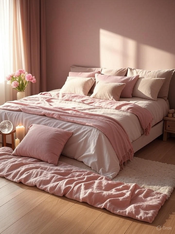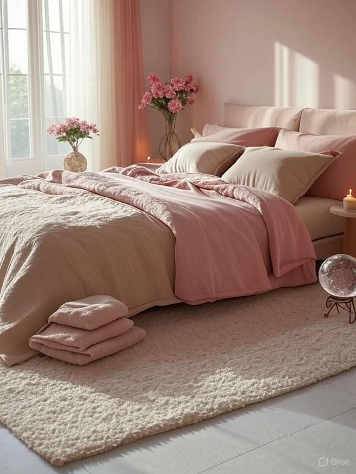 - 색상 선택: 부드러운 분홍색, 파스텔 톤, 또는 베이지색을 사용해 낭만적인 분위기를 만드세요. 붉은색은 열정을 더하지만 과도하면 갈등을 유발할 수 있으니 적당히 활용하세요.